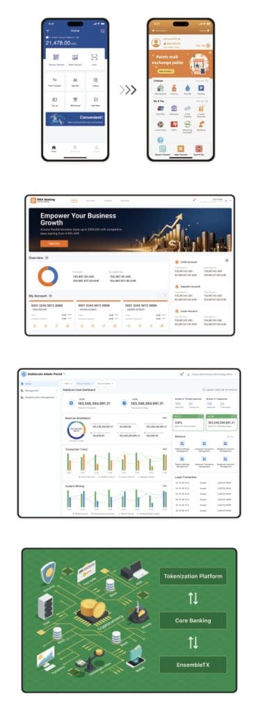 以数字金融体系为核心,构建集成 API 的中间件,整合网上银行、手机银行、公共服务和移动金融,助力银行实现数字化和智能化转型。