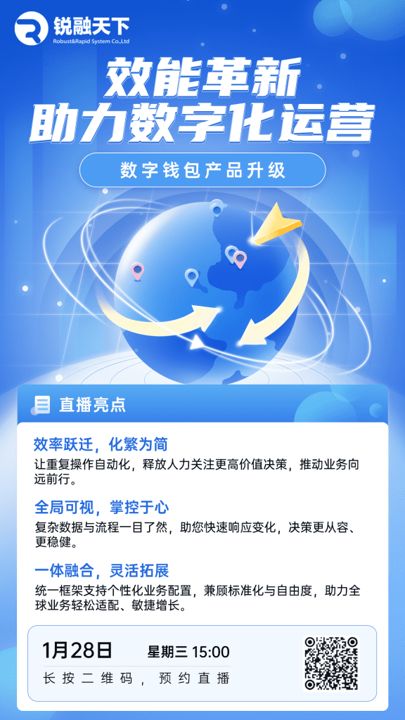 1月28日,让我们相约锐融天下直播间,共同探索如何通过系统化升级,将支付管理从“日常运维”转化为“增长引擎”。这不仅仅是一次产品功能的展示,更是一场关于数字化支付业务未来形态的深度对话。